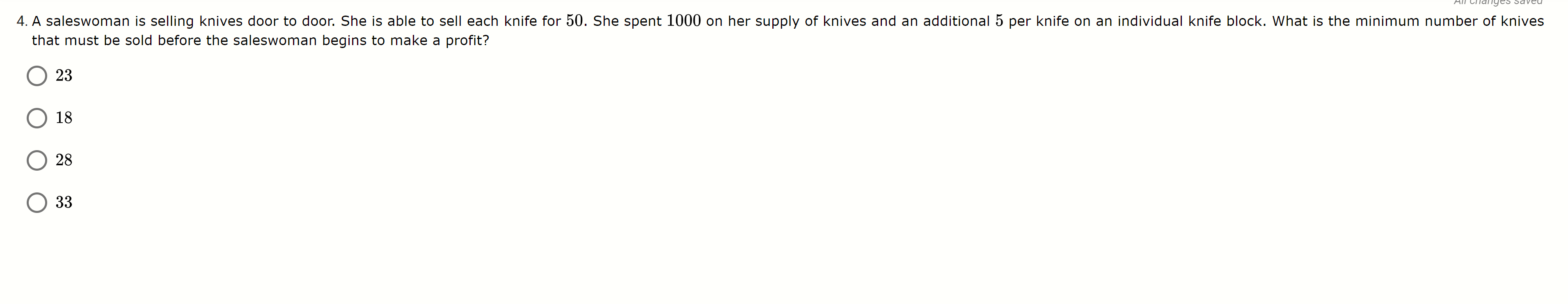Solved 4. A saleswoman is selling knives door to door. She